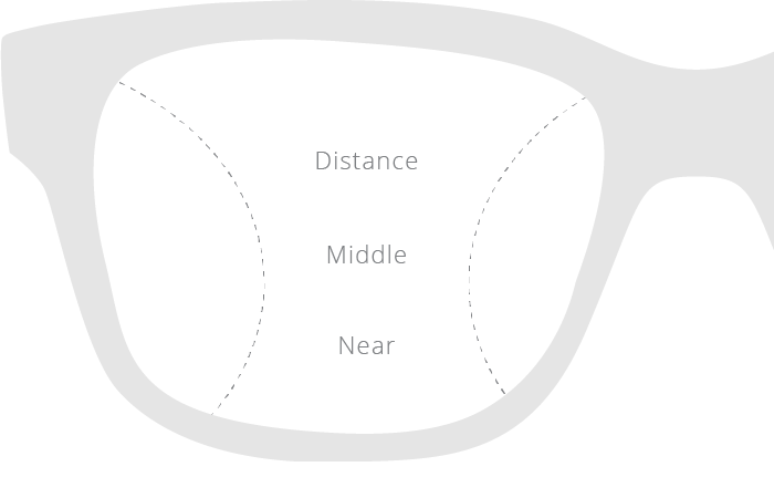 Varifocal lenses have graduated power across the lenses. The top part allows for distance vision. The middle is for intermediate vision, and the lower part is for reading. Varifocals are great if you need to wear glasses all the time and spend time in front of a computer. The intermediate portion of the lenses has a wide field of view.